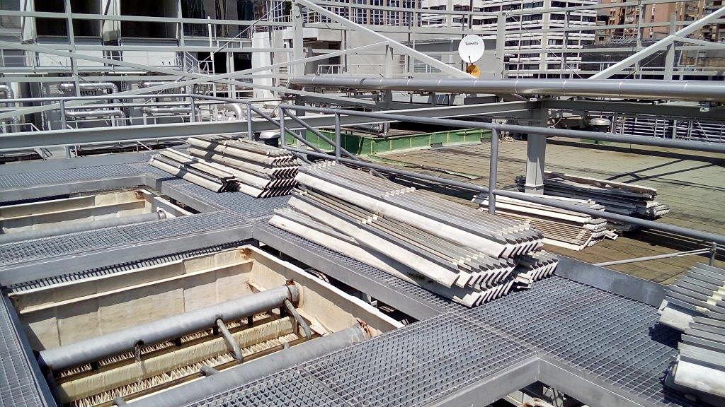 Se tratan todas las partes desmontables, rellenos, separadores, etc. Llegando hasta las zonas más difíciles para conseguir una limpieza optima con los productos adecuados. Estos equipos si no son tratados tienen un alto de riesgo de formación de colonias de legionella.